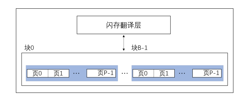 在 SSD 中,一个闪存由 B 个块组成,每个块又由 P 页组成。通常,页的大小为512 字节 ∼ 4KB,块由 32 ∼ 128 页组成,块的大小为 16 KB ∼ 512 KB。数据在 SSD 中是以页为单位读写的。在写入数据之前,需要对一页所属的块进行擦除操作。所谓擦除,指的是将该块中所有位置为 1。而写入的操作实际上就是将部分位置为 0。当擦除次数过多后,块会因磨损而损坏。为了减少这种磨损带来的影响,闪存翻译层使用一种平均磨损算法,来将擦除平均到各个块上。